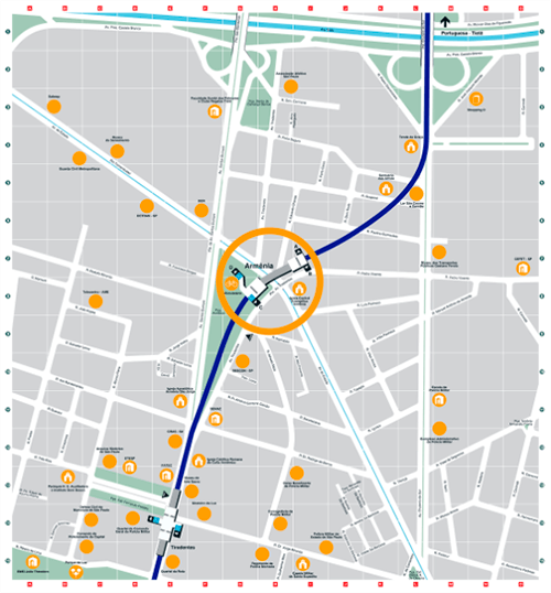 A Estação Armênia é uma das mais próximas e utilizadas por passageiros que chegam ou saem pelo terminal.