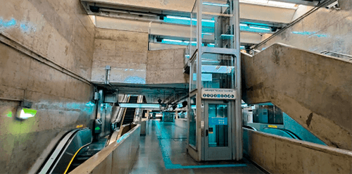 → Elevadores e escadas rolantes, garantindo acessibilidade para pessoas com mobilidade reduzida, idosos e usuários com carrinhos de bebê