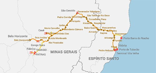 ⇒ Observar locomotivas e vagões de carga, já que a ferrovia também é muito usada para transporte de minério.