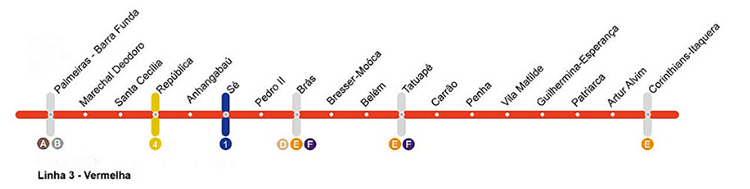 ⇒ Integração entre linhas: conexão interna gratuita entre a Linha 3 – Vermelha e a Linha 4 – Amarela.